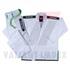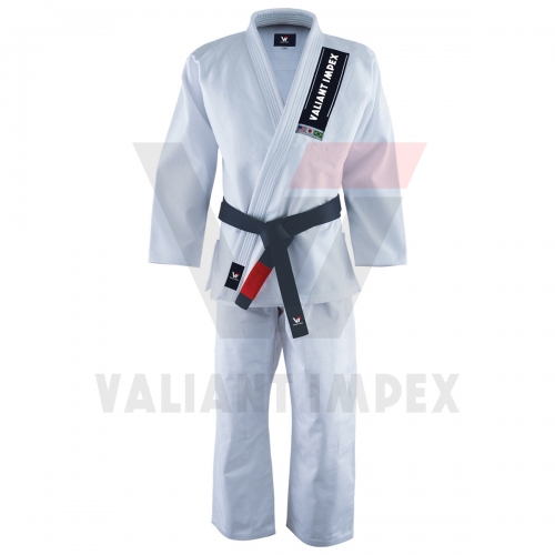 Made of 100% cotton Medium weight single weave rice grain Pre Shrunk. One piece jacket with no back seam. Reinforced back, shoulders, chest and armpits.Elasticized waist for kid size and drawstring waist pants for adults.